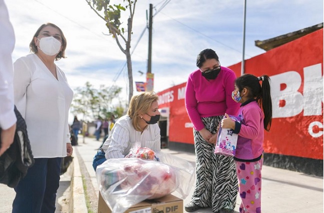 La gobernadora Maru Campos Galván entregó apoyos a madres solteras y mamás de hijos con discapacidad y habitantes de la colonia Cerro Prieto, en beneficio de cerca de 340 familias, gracias a la colaboración de empresas chihuahuenses que se sumaron al llamado de la titular del Ejecutivo Estatal, de favorecer a los más desprotegidos en esta época navideña.