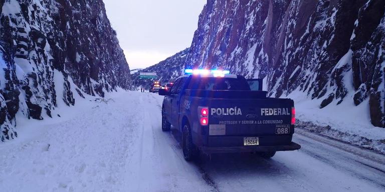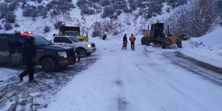 Ayer por la tarde noche continuaba cerrado el paso vehicular en el Puerto de San Luis, informo Policía Federal, Estación Nuevo Casas Grandes, resaltaron se llevaron acabó trabajos de remoción de nieve de la superficie de rodamiento pero se cristalizan de inmediato los residuos de nieve que quedan sobre la misma.