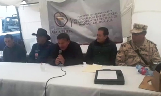 El día de ayer bajo una intensa lluvia se llevó a cabo una reunión con autoridades militares, federales y los presidentes municipales de Nuevo Casas Grandes Héctor Mario Galaz, de Janos Sevastian Pineda y de Agua Prieta Jesús Alfonso Montaño así como el General de Brigada Diplomado de Estado Mayor Juan Antonio Jasso Martínez, Inspectores en jefe de la Policía Federal de Agua Prieta Miguel Ángel Angulo y en Nuevo Casas Grandes Sergio Solís, también estuvo Mario Saldaña delegado regional federal del Noroeste.