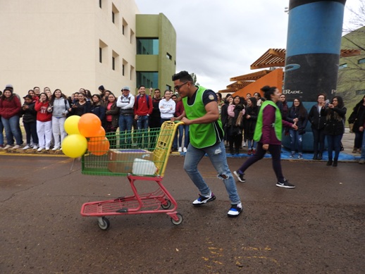 Esta carrera consistió en relevos maniobrando carros de supermercado a través del estacionamiento el campus, en donde cada programa académico estuvo representado por cinco de sus estudiantes, resultando ganador el equipo de Enfermería.