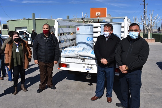 Nuevo Casas Grandes.- El Presidente Municipal de Nuevo Casas Grandes Héctor Mario Galaz, acompañado por regidoras y regidores que integran el H. Ayuntamiento, hizo entrega esta mañana de poco más de 4 mil 300 litros de pintura en color amarrillo y blanco, así como de 150 sacos de 25 kilos cada uno con material de micro esfera que será aplicado en calles y cruceros peatonales de esta ciudad.