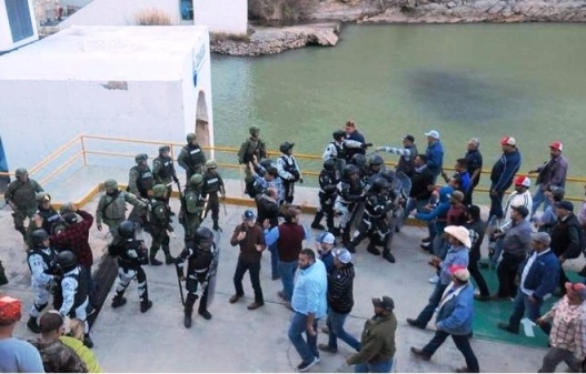 Más de tres mil habitantes de los municipios de Camargo, La Cruz, Delicias, San Francisco de Conchos -entre ellos agricultores- fueron ante la presa La Boquilla, donde encontraron cerco de elementos de la Guardia Nacional con escudos y equipo antimotines, así como retenes del Ejército.