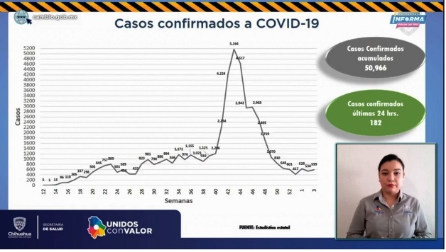 En las últimas 24 horas, 19 chihuahuenses fallecieron por Covid-19 y se confirmaron 182 casos nuevos, según el reporte de la Secretaría de Salud del Estado.