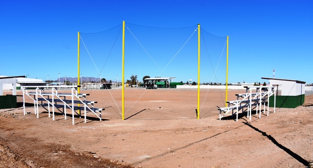 *La obra consiste en dos campos para jugar al béisbol y se incluyen mallas, gradas y dog-outs