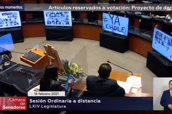 Durante la Sesión Ordinaria de este jueves en el Senado, un cártel con la frase "#YaChole" fue expuesto de manera virtual, luego de que este jueves el presidente Andrés Manuel López Obrador expresara que "ya chole" con las campañas contra Félix Salgado Macedonio, acusado de abuso sexual.