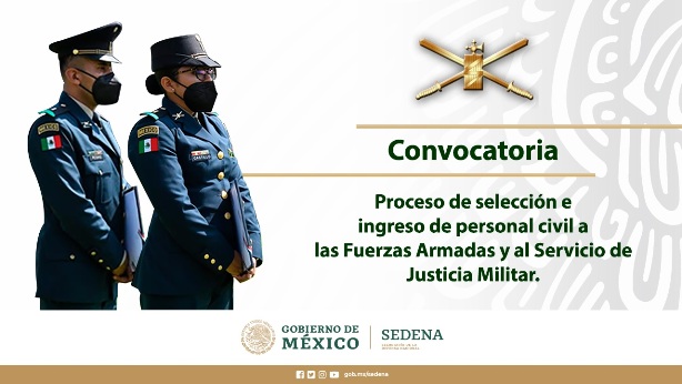 Convocatoria Justicia Militar Convocatoria para el proceso de selección e ingreso de personal civil al Servicio de Justicia Militar del Ejército y Fuerza Aérea Mexicanos.