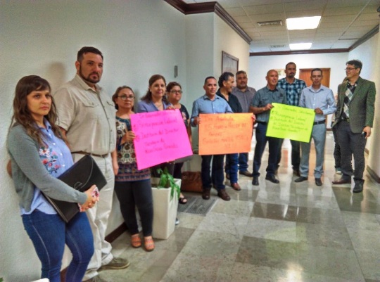 La comitiva, encabezada por el propio profesor Álvarez, se personó en la oficina del secretario de Educación para solicitar su intervención de una vez en el conflicto tras 20 días de paro de labores y 110 horas de la maestra Arámbula en huelga de hambre. En este sentido, reiteró lo injustificado de ambos despidos por el simple hecho de haber acudido formando parte de una comisión sindical para entregar a Santiesteban un oficio solicitando la reinstalación de una compañera administrativa también despedida de forma autoritaria por el director.