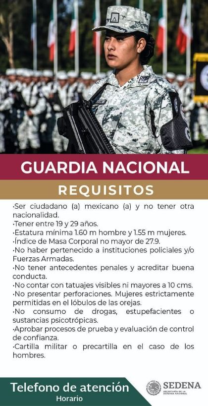 Quieres pertenecer a la Guardia Nacional, interesados presentarse con todos los requisitos al 35 Batallón de infantería. Los mexicanos interesados entre 18 y 30 años, que no tengan antecedentes penales, podrán alistarse a la Guardia Nacional.