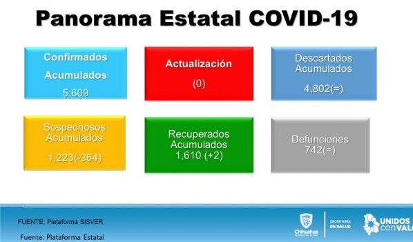Además, no se registraron nuevas defunciones por esta enfermedad para quedar en 742, informó el director médico de la Secretaría de Salud en la Zona Norte, Arturo Valenzuela Zorrilla.