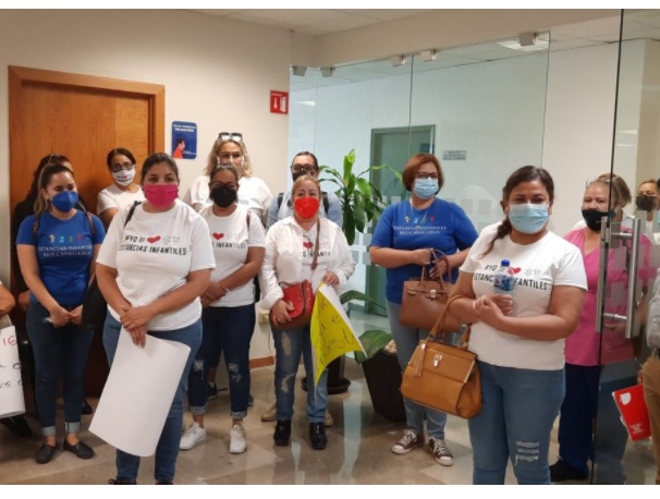 Propietarias y trabajadoras de estancias infantiles del estado acudieron esta mañana a la Secretaría de Desarrollo Social para exigir el pago de 19 millones de pesos que fueron destinados al apoyo de 119 centros, dentro del presupuesto de egresos 2021.