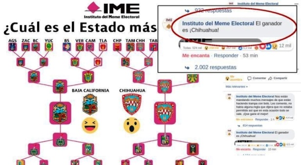 En la final del concurso que organizó el ‘Instituto del Meme Electoral’, página de Facebook especializada en memes de tipo político, geográfico y cultural, Chihuahua venció a Baja California.