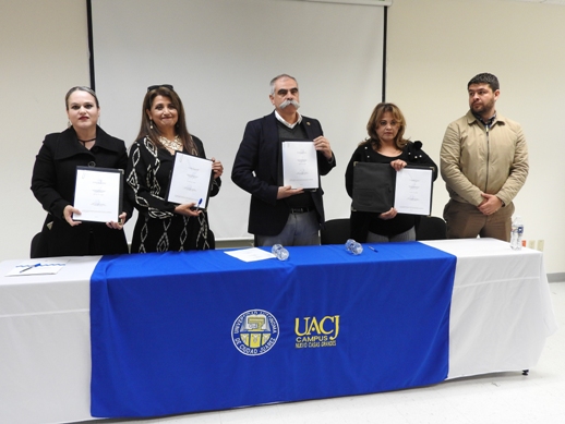 El compromiso de colaboración entre instituciones se da en el marco del Día Internacional de la Mujer, con la intención de establecer las bases necesarias para el desarrollo de programas y proyectos de colaboración. La Mtra. Miriam Galaz Piñón, Jefa de la División, dirigió al público e invitados unas palabras de bienvenida mediante las cuales agradeció el haber tomado en cuenta a la UACJ para fungir como sede de este importante momento, posteriormente fungió como testigo de honor en la firma de ambos convenios.
