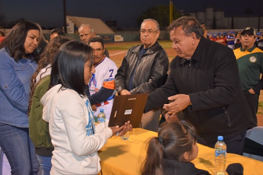 Posteriormente, las autoridades municipales, deportivas y educativas hicieron entrega de reconocimientos a destacados peloteros en esta ciudad, comenzando con la familia de Gilberto Corona, posteriormente a la lanzadora Paola Vargas y a los peloteros Martín Domínguez Vargas alías “el Chapo”, Ramiro Chaparro Castro, Jorge López Madrid y Jesús Moreno Rodríguez.