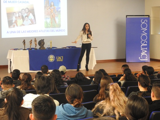 La Universidad Autónoma de Ciudad Juárez recibió la visita de la destacada atleta de esta localidad Iveth Carreón, quien ofreció una charla motivacional para un centenar de estudiantes que acudieron al evento realizado la tarde del once de marzo en el auditorio universitario.