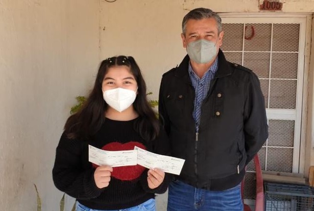 Este viernes el recaudador de rentas de Nuevo Casas Grandes Pedro Damiani entrego cheques a niña que resultó electa como “Niña Gobernadora por un Día”.