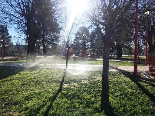 OFRECEN UN BELLO ESPECTÁCULO LOS SISTEMAS DE RIEGO EN PARQUES Y PLAZAS PÚBLICAS |