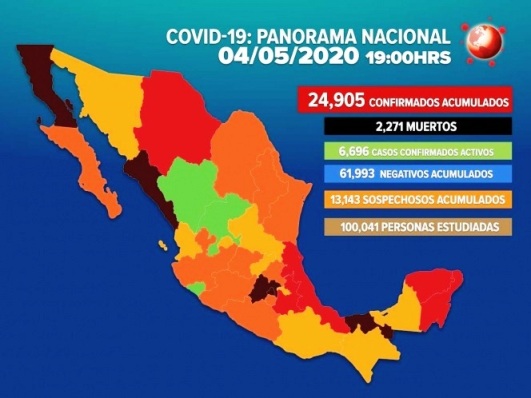 Aumentan a 24,905 los casos positivos de Covid-19 en México |