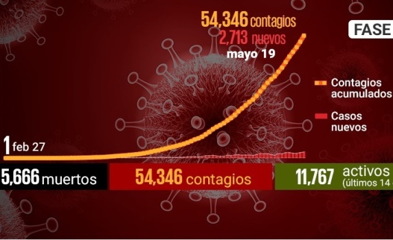 Suman 334 muertes más por COVID-19 en México, a un total de 5,666; van 54,346 casos confirmados