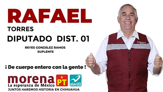 Rafael Torres candidato de la coalición Juntos Haremos Historia (MORENA, PT Y NA) a diputado local por el distrito 01, afirma que aran realidad el Juntos Haremos Historia en Chihuahua en muchos sentidos, por decir uno de ellos se esta realizando en esta contienda electoral con la equidad de género, de los ocho municipios del distrito siete candidaturas son encabezadas por mujeres, resalto diciendo “Esta coalición tiene confianza y apuesta a la capacidad, a la inteligencia, al entusiasmo y trabajo que realizan las mujeres”
