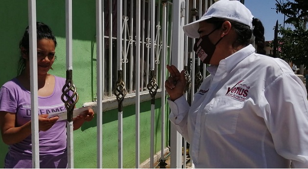 Este martes la candidata de la coalición Juntos Haremos Historia (MORENA, PT Y NA) a síndico municipal de Nuevo Casas Grandes Venus Yadira Olmos, estuvo visitando acompañada de su suplente las colonias Villas del Tecnológico y Magisterial.