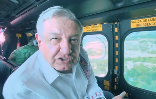 Lo acompañaron a este vuelo en un helicóptero de la Fuerza Aérea Mexicana (FAM), el general Luis Cresencio Sandoval, secretario de la Defensa Nacional (Sedena); el almirante José Rafael Ojeda Durán, titular de Marina; Laura Velázquez Alzúa, coordinadora nacional de Protección Civil, y el gobernador Adán Augusto López.