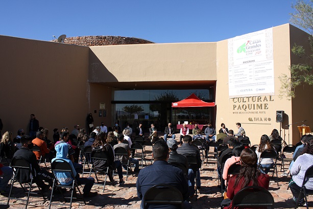 Llevado a cabo en la explanada del Museo de las Culturas del Norte (MCN), este evento busca refrendar el compromiso por conservar y proteger a Paquimé y su museo de sitio, comunicar la grandiosidad de la región, encontrarse con sus distintas culturas, compartir los avances en investigación, generar intercambios entre los seis municipios colindantes y reconocer el trabajo de los promotores culturales, explicó el director del Centro INAH Chihuahua, Jorge Carrera Robles, acompañado del director del MCN, Mauricio Salgado.