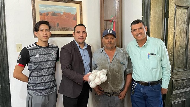 Mediante el departamento de deportes el Presidente Roberto Lucero y el director Alberto Chávez realizaron entrega de apoyos a equipos de béisbol de la localidad.