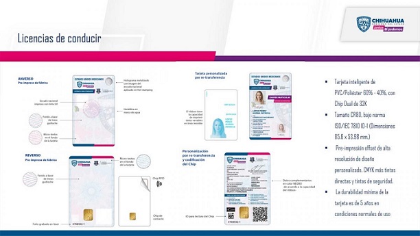 El plástico cuenta con un laminado holográfico del escudo de Chihuahua y entre las medidas de seguridad más importantes destaca la impresión especial del nombre del titular de la tarjeta que sólo podrá ser visto con una luz de rayos ultravioleta.