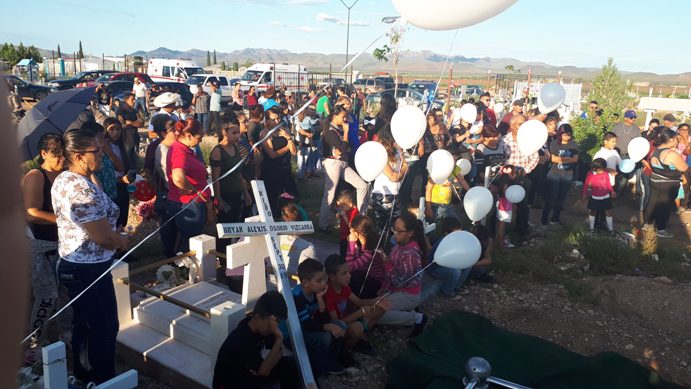 Ayer por la tarde fue el funeral del niño Bryan Alexis, cientos de personas se dieron cita en el panteón Recinto de Paz, cientos de personas desde temprana hora se dieron cita en este lugar, fue pasadas las 6 de la tarde cuando arribo la carroza con el cuerpecito de este niño, seguida por personas principalmente niños con globos blanco en la mano quienes exigen “Justicia para Bryan” (Gritaban).