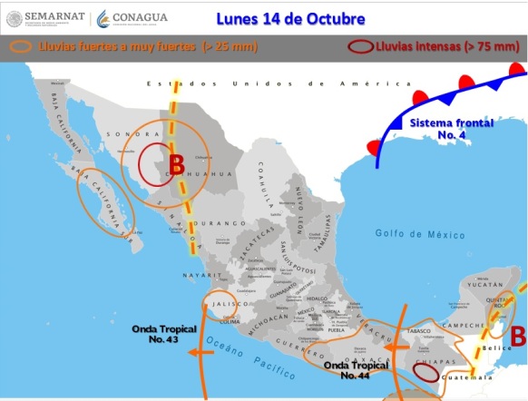 Protección Civil informa que estas condiciones climatológicas se deben a la interacción del ingreso de humedad, una línea seca y la entrada del Frente Frío No. 4 por la zona norte y noreste del país, en base al pronóstico del Servicio Meteorológico Nacional, dependiente de la Comisión Nacional del Agua (Conagua).