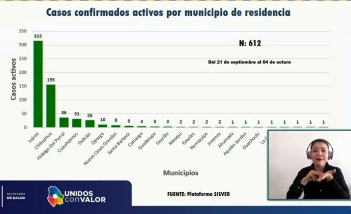 El doctor Valenzuela indicó que Ciudad Juárez concentra 315 casos, seguido de la ciudad de Chihuahua con 155.