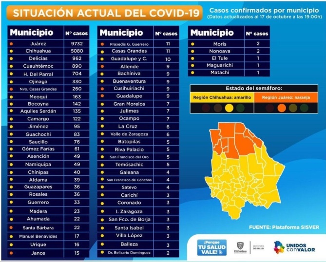 Cabe destacar que las 16 defunciones en la entidad se presentaron en los municipios de Ciudad Juárez, Chihuahua, Camargo y Saucillo.
