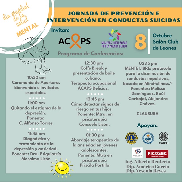 Agentes de cambio para la prevención del suicidio (ACAPS) en coordinación con AGENDA DE MUJERES invita cordialmente.
