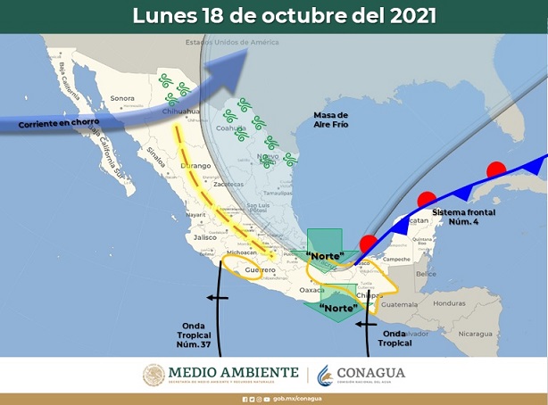 Lo anterior, de acuerdo al pronóstico del Servicio Meteorológico Nacional (SMN), de la Comisión Nacional del Agua (CONAGUA) y de la Junta Central de Agua y Saneamiento del Estado (JCAS).