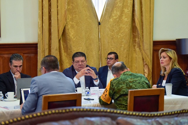 En compañía del secretario general de Gobierno, César Jáuregui; el secretario de Seguridad Pública, Gilberto Loya; representantes de la Fiscalía General del Estado y la Fiscalía General de la República; así como autoridades de la Guardia Nacional y el Ejercito Mexicano; la gobernadora analizó las distintas acciones ejecutadas por estas dependencias, durante la semana pasada en pro de la seguridad de la ciudadanía.