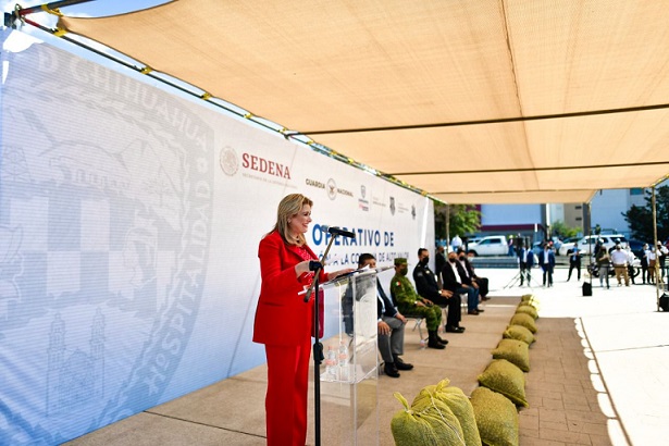 La gobernadora Maru Campos puso en marcha el Operativo de Protección a la Cosecha de Alto Valor, misma que calificó como un compromiso del gobierno estatal para proteger el trabajo agrícola y abatir el robo de nuez, alfalfa, chile, algodón, cebolla, y otros productos agrícolas.
