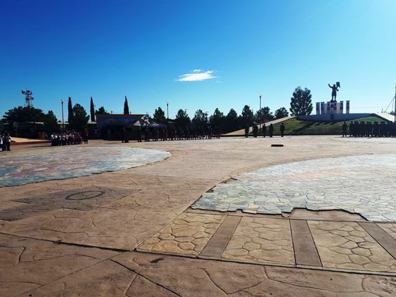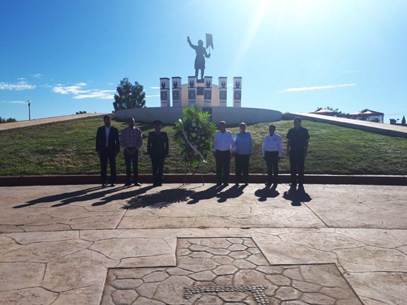 Se cumplió así con el propósito de la ceremonia que contó con la asistencia de grupos de estudiantes de diversas escuelas de la localidad, funcionarios públicos e integrantes del Cabildo de Nuevo Casas Grandes, fue presidida por el Coronel José Martín Torres Martínez Del 35 Batallón de Infantería así como por el presidente municipal Héctor Mario Galaz y su esposa Rosa María García, los acompañaron el secretario del ayuntamiento Javier Mendoza, El Oficial Mayor Víctor Quiñonez, entre otras autoridades.