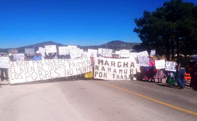 Bajo la frase de “tenemos hambre”, el grupo de representantes rarámuris encabezan la marcha en donde el principal reclamo es hacia el delegado federal, Juan Carlos Loera de La Rosa, pues aseguran que no les ha entregado los apoyos de los programas sociales de Andrés Manuel López Obrador.