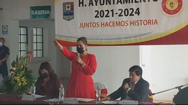 Este viernes por la mañana durante sesión solemne Cynthia Ceballos protesto como presidente municipal de Nuevo Casas Grandes.