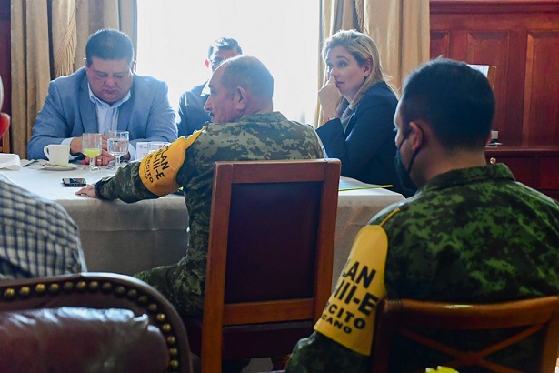 En compañía del secretario general de Gobierno, César Jáuregui; el secretario de Seguridad Pública, Gilberto Loya; el encargado de la Fiscalía General del Estado, Roberto Fierro; representantes de la Guardia Nacional y la Fiscalía General de la República, la gobernadora Maru Campos analizó las acciones realizadas este mes por parte de las distintas dependencias encargadas de la seguridad del estado.